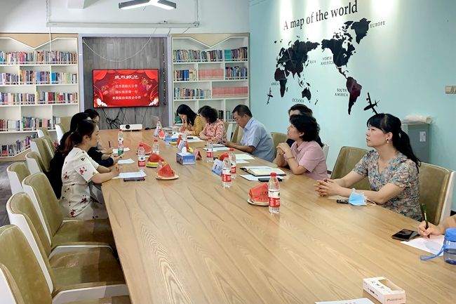 李鲜花表达了对迈杰思幼儿公学此次到访的热烈欢迎及对未来合作的热切期盼。樊磊对英文学院的办学历史、师资力量、现有学生人数等进行了总体介绍。李燕从专业方向设置、卓越人才培养、学科建设和学生培养质量等方面作了介绍,希望在双减政策的大形势下,通过校企合作,双方建立起紧密的人才培养合作关系,在专业实践、实习实训、人才培养等方面开展深度合作,深化英语专业教育改革,培养新形势下更符合岗位需求的人才,为学生提供更多机会和发展空间。
