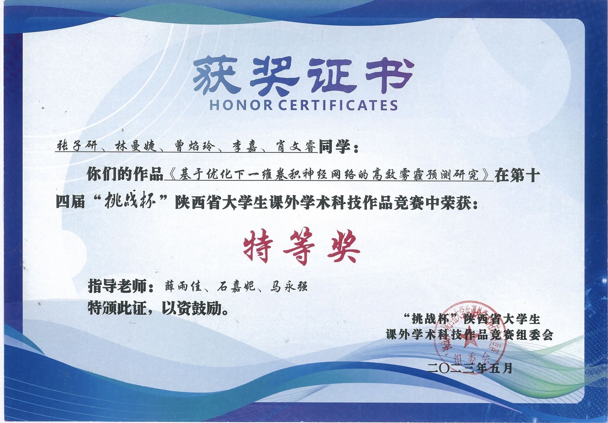 获奖证书