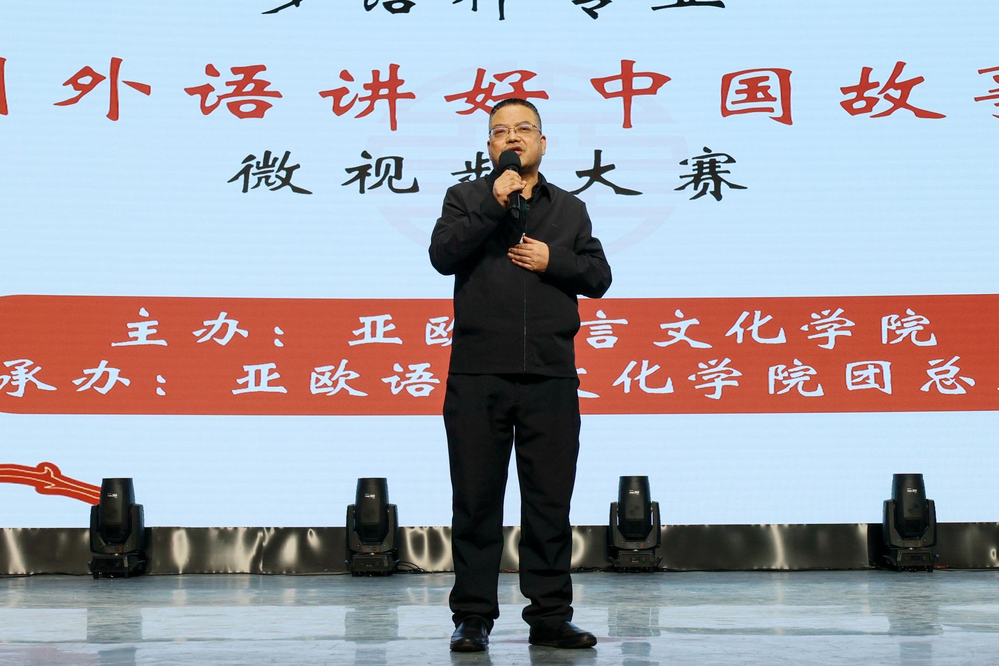 为进一步丰富西译学子文化生活,加强学生思想政治教育,营造良好的育人氛围,3月28日下午,由亚欧语言文化学院主办,亚欧语言文化学院团总支承办的第二届亚欧语言文化学院多语种专业“用外语讲好中国故事”微视频大赛决赛在演播大厅举行。政府督导专员、校党委书记栾宏,副校长武忠远,党委副书记、副校长郭炜,亚欧语言文化学院院长李庆明等领导应邀出席。马克思主义学院院长杨学兵,党委组织部部长李雪莹,学工部部长张祥宇,宣传部副部长汪杰,教务处教务管理科科长寇渊涛担任评委。部分师生代表到场观看。
