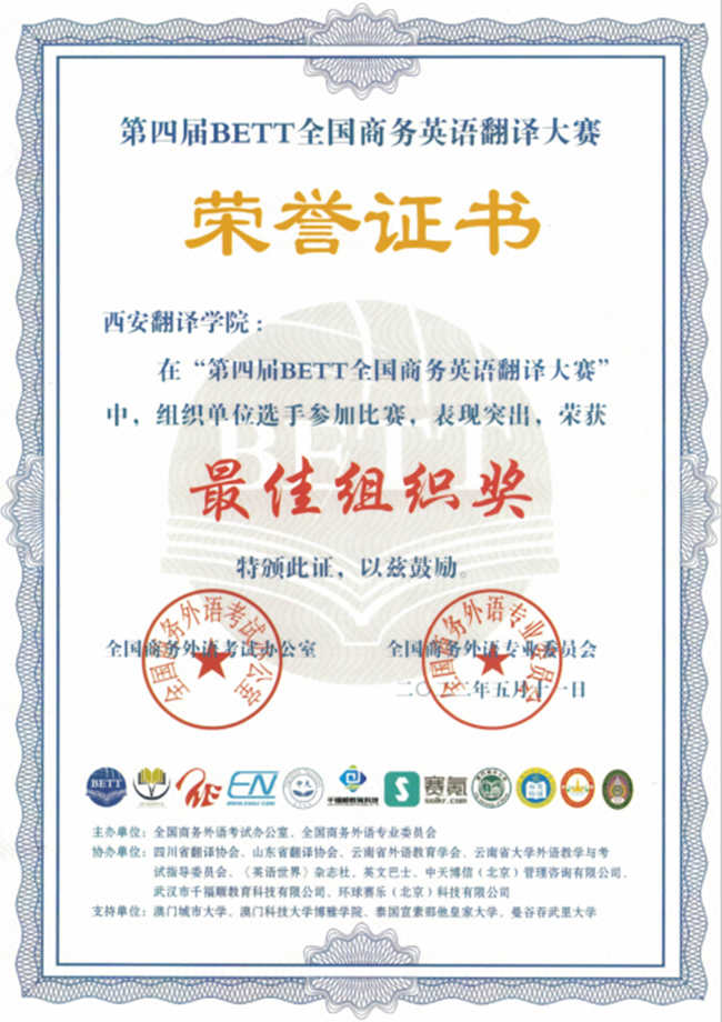 西安翻译学院荣获“最佳组织奖”
