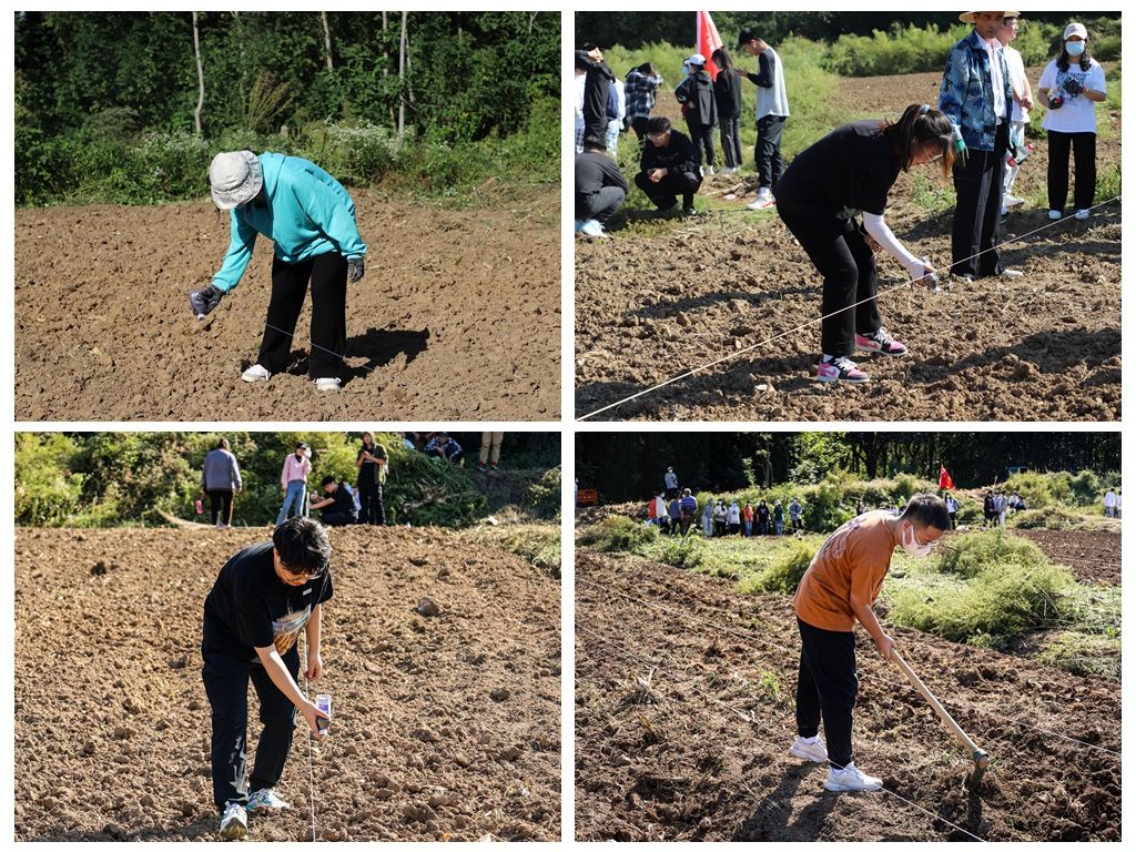 活动中,同学们分成若干小组,在地里播散种子、翻新土地,大家始终保持高昂的情绪和饱满的热情积极投入到实践活动中,尽情体验着劳动的乐趣。劳动结束后,同学们脸上洋溢着满足的笑容,享受着劳动成果带来的幸福感。