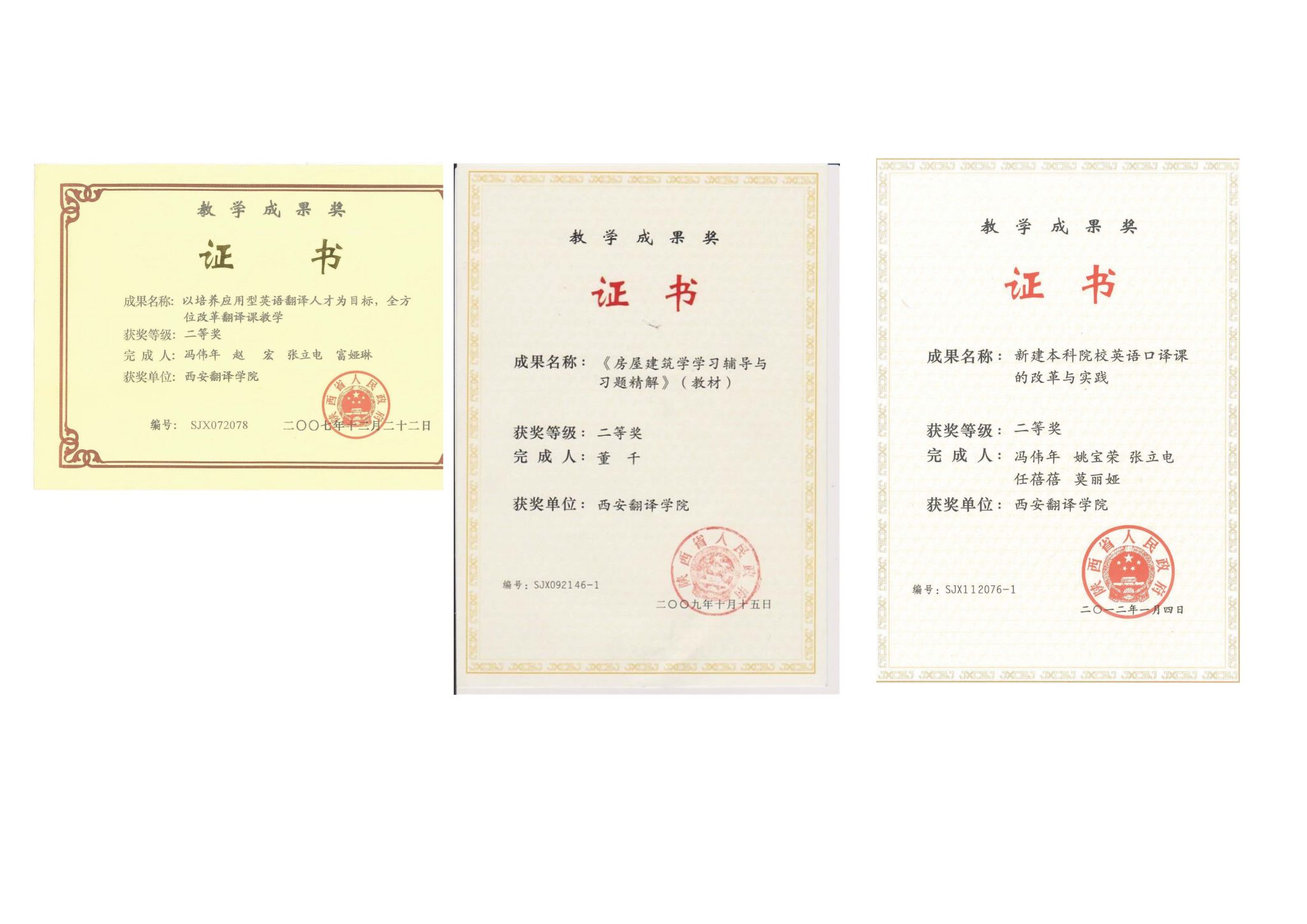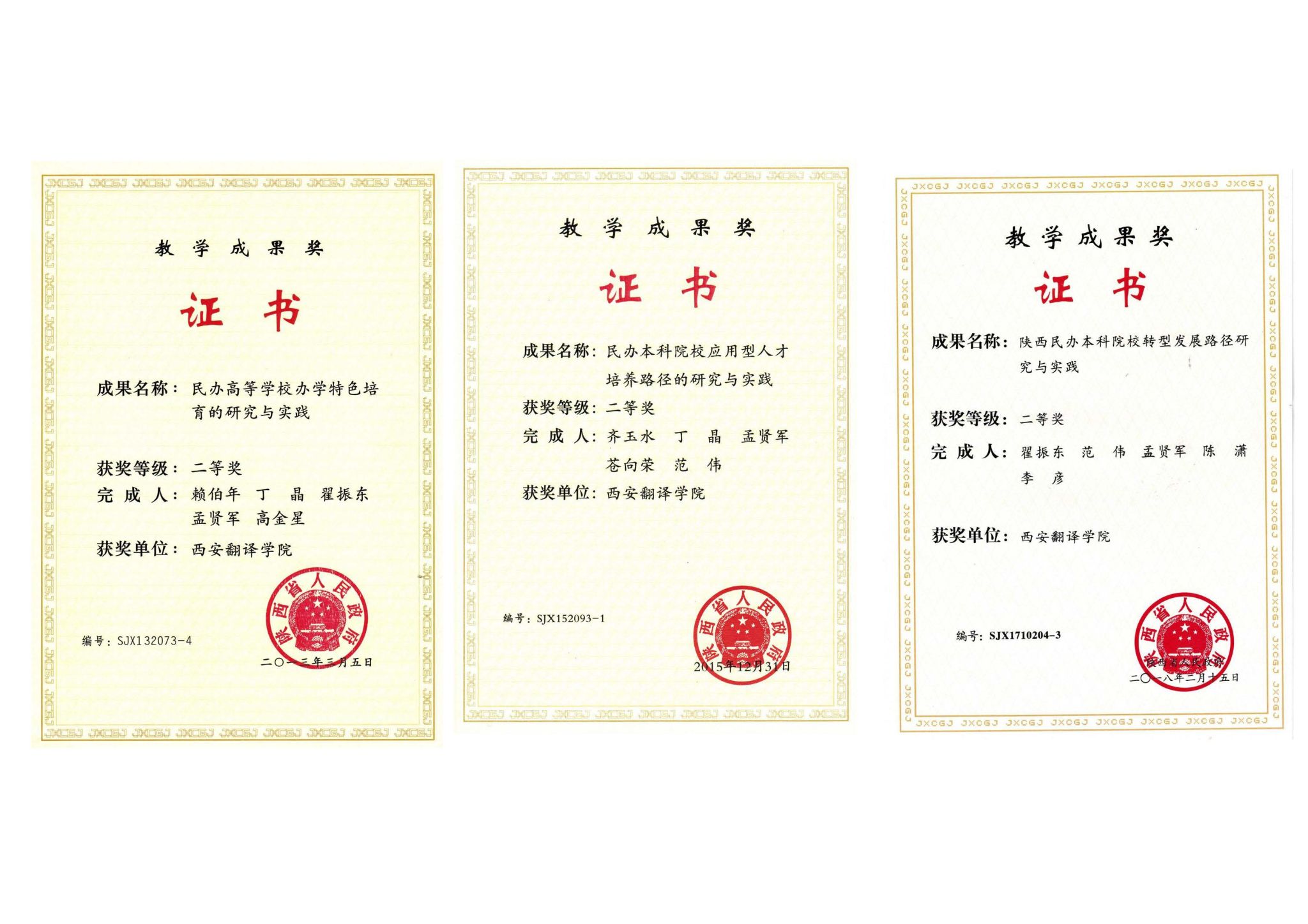 陕西省教育教学成果奖每两年评审一次,是全省教育教学研究和实践领域颁授的最高奖项,是评价高校人才培养工作水平和教育教学改革成果的核心指标,代表了全省教育教学成果的最高水平。自2007年起,我校连续斩获8届陕西省教育教学成果奖,累计获奖项目12项,这是我校教师经过多年努力取得的创造性成果,也充分体现了学校教育教学改革工作的重大进展。