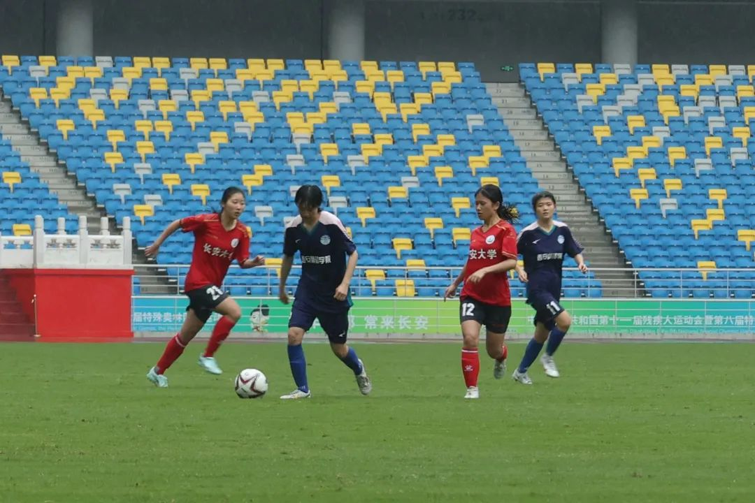 5月8日上午,陕西省校园足球联赛女子足球比赛在西京学院开赛,西安翻译学院女足代表队对战西安理工大学女足队,开启了西译姑娘们在本届大学生校园足球联赛上的首场比赛。经过队员们的奋力拼搏,最终以6:0的比分获胜。5月10日,西译女足与西安文理学院女足对战,以6:0的比分获胜;5月12日,在与西京学院的对战中,西译女足在60分钟内以4:0比分小组第一出线;在5月14日的半决赛中,西译女足与西安交通大学城市学院女子足球队对战,以5:0的比分获胜;5月16日,西译女足在与西安思源学院女子足球队的对决中,以4:0的比分挺进决赛。在5月29日进行的冠亚军争夺赛中,西译女足姑娘们冒着大雨依然坚持奋战在赛场上,以坚定的意志、顽强拼搏的精神,最终以4:0的比分战胜长安大学代表队,问鼎二级联赛女子组足球比赛冠军,登上了2023年陕西省大学生足球联赛的最高领奖台。