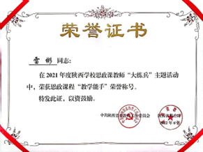 22021年度陕西学校思政课教师“大练兵”教学能手称号---雷彬